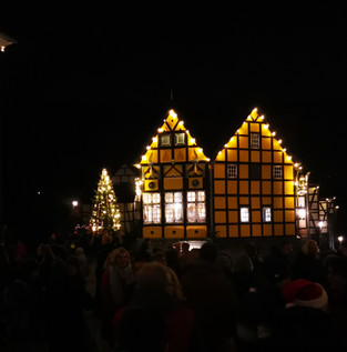 Wir waren gestern auf dem Weihnachtsmarkt im Freilichtmuseum Hagen. Mittlerweile ist es schon eine richtige Tradition für uns geworden, denn wir finden das dies einer der schönsten Weihnachtsmärkte ist. Wenn irgendwie möglich versuchen wir jedes Jahr dort hin zu kommen. Viele der Aussteller zeigen in den historischen Häusern und den kleinen Buden ihre Kunst und verkaufen Ihre Produkte, welche allesamt handwerklich hergestellt worden sind. Hier ist nicht der übliche " Kirmes- Weihnachtsmarkt" !!! Auch hatten wir dieses Jahr richtig großes Glück, denn wir konnten einen Parkplatz direkt am Freilichtmuseum ergattern. Denn PKW Parkplätze sind echt rar und die Parkplatzsituation ist jedes Jahr aufs neue ein Chaos. Trotz des unermüdlichen Einsatzes vom THW ist es schwer einen Stellplatz für sein Auto zu bekommen. Aber hier setzt die Hagener Strassenbahn viele Sonderbusse ein um den verkehr etwas zu entspannen - allerdings sind diese Busse dennoch oft bis zum letzten Platz gefüllt. Da der Weg vom Parkplatz bis zum Museum doch etwas weit ist hat die Museumsleitung auch dieses Jahr wieder Pendelbusse eingesetzt, welche die Beucher direkt vor das Kassenhäuschen bringt. Der Eintritt ist mit 5,- Euro für Erwachsene sogar erschwinglich. Für das leibliche Wohl ist natürlich auch bestens gesorgt: Neben einigen Wurst- und Glühweinständen konnten wir unter anderem auch Verkaufsstände mit Grünkohl, Lachsbrötchen, Waffeln, Potthucke und natürlich die Musumseigenen Läden wie z.B. den Bäcker oder die Brauerei mit eigenem WInterbier entdecken. Sogar den Nikolaus im feierlichen St. Bishofskostüm konnten wir sehen. Dieser soll an allen drei Öffnungstagen zwischen 17 und 19 Uhr den Besuchern eine kleine Freude machen. An einigen Plätzen gibt es Musik mit Alphörnern, Bands und Chören. Die Musiker präsentieren von Irish-Folk über Weihnachtsjazz bis Weihnachtspop Live-Klänge statt "Musik aus der Konserve". Zum Abschluss waren wir dann noch im Bauernhof unten an den Parkplätzen und haben uns dort mit leckenem Zwiebelbrot und Stuten, sowie diversen Käsesorten eingedeckt. Wie jedes Jahr war es ein toller Ausflug !